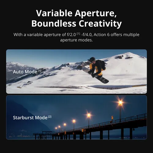 de ação da DJI. Modos avançados como Starburst e SuperNight