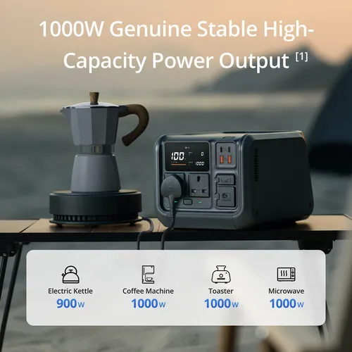 Alimentada por uma bateria LFP (ferrofosfato de lítio) integrada com capacidade de 512 Wh, ela fornece até 1000 W