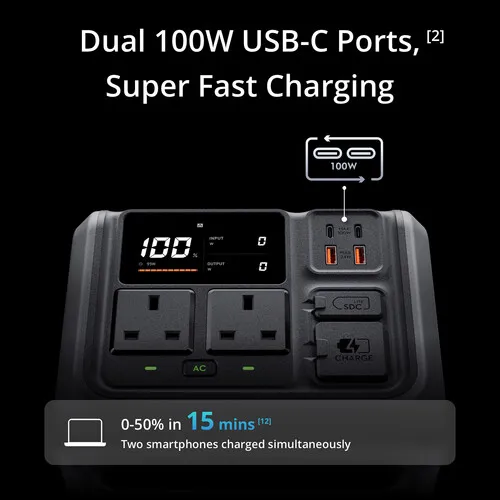 • Duas portas USB-C PD 3.0 (máximo 100 W cada)