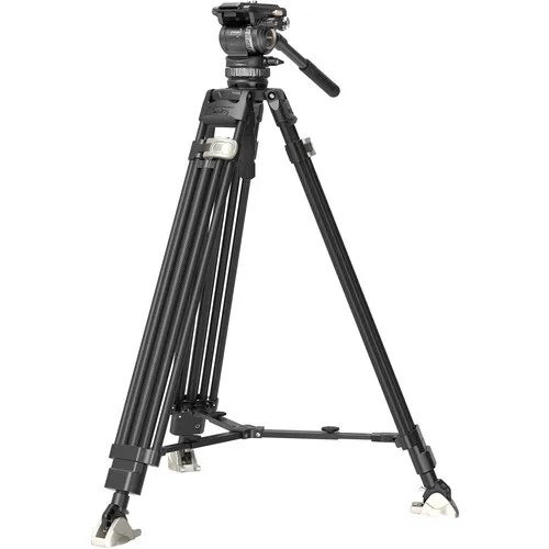 A cabeça hidráulica durável possui uma placa de liberação rápida tipo Manfrotto 501PL com design de encaixe, uma base de meia esfera de 75 mm que suporta até 8 kg, contrapeso de 6 níveis, ajustes de arrasto de panorâmica/inclinação de 4 níveis, panorâmica de 360° e inclinação de +90/-60°. Uma alça telescópica de panorâmica se estende de 35 a 53 cm de comprimento e pode girar 360° na roseta direita ou esquerda.
