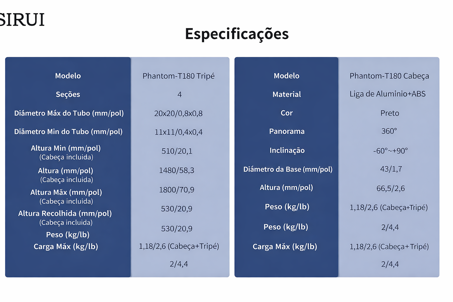 Tripé de Alumínio SIRUI Phantom T180 para Câmera Fotográfica